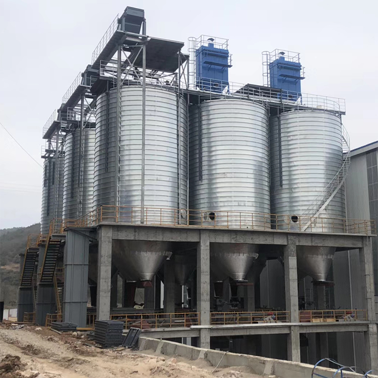 接收与清理设置在筒仓中央该形式筒仓一般采用对称排列,提升机井架固定,经过提升后的物料通过仓顶溜管进人筒仓。这种形式省去了仓顶输送设备和上通廊,从而节省了建造费用,缩短了建造工期。对于贮存时间要求较长的大型粮库,则应根据物料的流向、场地情况、工艺要求等合理地配置投料口、工作塔、烘干塔及海南藏族钢板仓的位置。国华钢板仓介绍了这几种常见的进料形式,实际中可将各种形式相互组合,相互渗透,根据实际情况合理搭配,灵活选用。